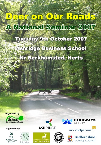Deer-vehicle collisions are a growing national problem on our roads and results in injuries and sometimes death for people and deer. The Chilterns, and the National Trust Ashridge Estate in particular, are a real hotspot for collisions between deer and vehicles. It is very appropriate, therefore, that the Estate was the location of a day-long event at which experts from around the country gathered to learn about local and national measures which have been trialled to reduce deer-vehicle collisions. Click the links below to view the full programme, download pdf copies of presentations, and summary and outcomes of discussions: . Full Seminar programme [pdf] Presentations: Steve Rodrick: Introduction- A Partnership Approach [pdf] Graeme Cannon & Rod Wilson: The Ashridge Approach to Deer Management [pdf] Tony Sangwine: Deer vehicle collisions - future management options [pdf] Magedie Pretorius: Traffic Management Measures within the Three Counties Area [pdf] Jochen Langbein: Use of remote video surveillance to investigate deer behaviour in relation to wildlife deterrents, roads and vehicles [pdf] David Hooton: